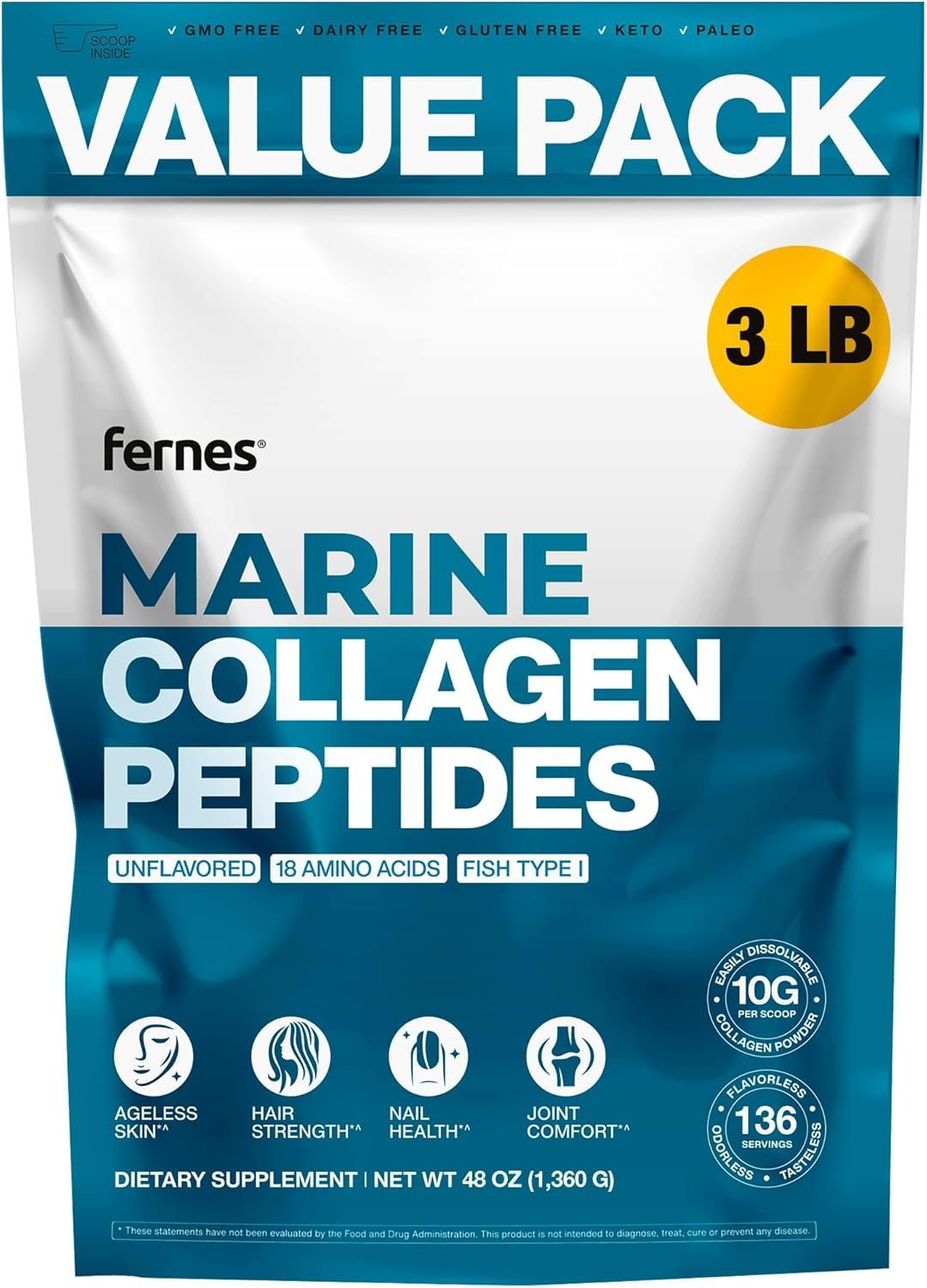 Marine Collagen Peptides for Women Men (3LB) Fish Type I Fla...