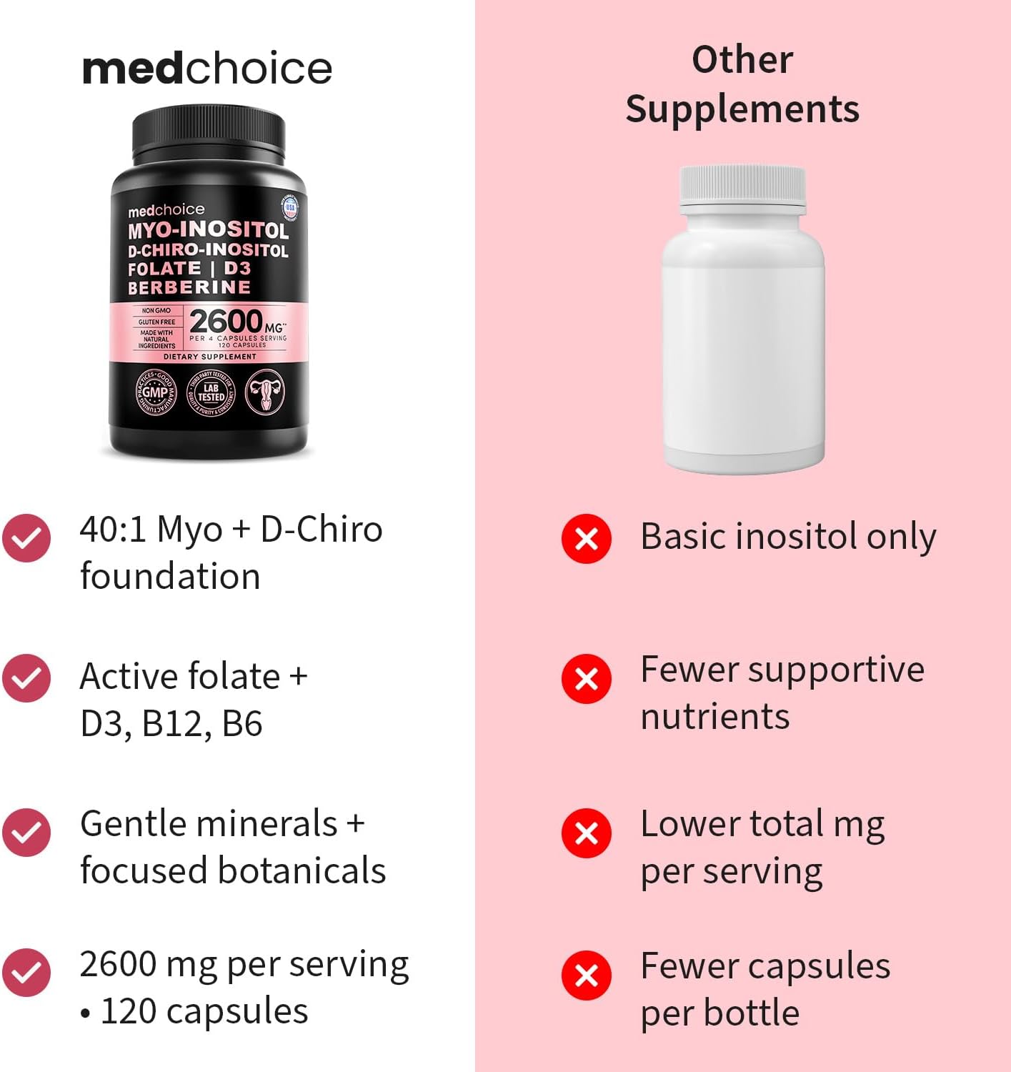 Each serving has a superior blend of Myo-Inositol and D-Chiro Inositol, giving you a fast-acting, easy-to-swallow, and non-habit-forming formula without any aftertaste of stimulants like caffeine.