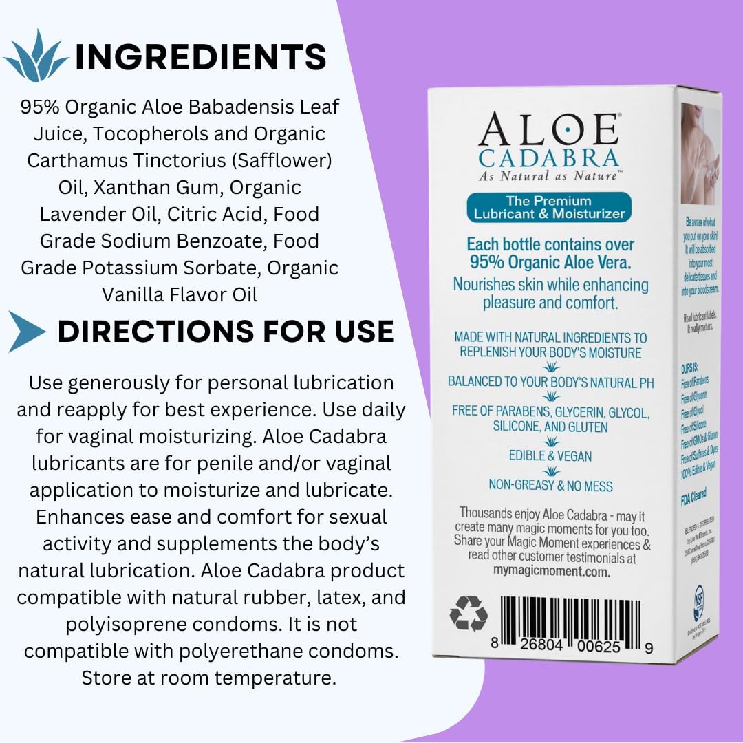 Aloe Cadabra Vaginal Moisturizer, Organic Edible Aloe Lube for Men, Women, Non-Staining, pH Balanced, (French Lavender, 2.5 Ounces, 1 Pack)