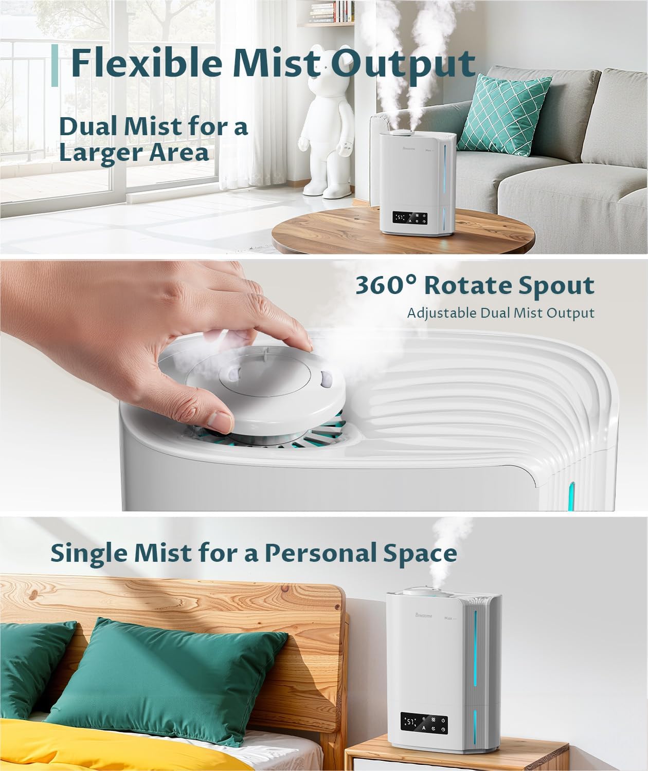 WHISPER-QUIET & SAFE: Designed with a quiet sleep mode, our humidifier can work in low noise to protect your undisturbed good sleep. It would automatically shut off when water runs out. Safe for you and your whole family.