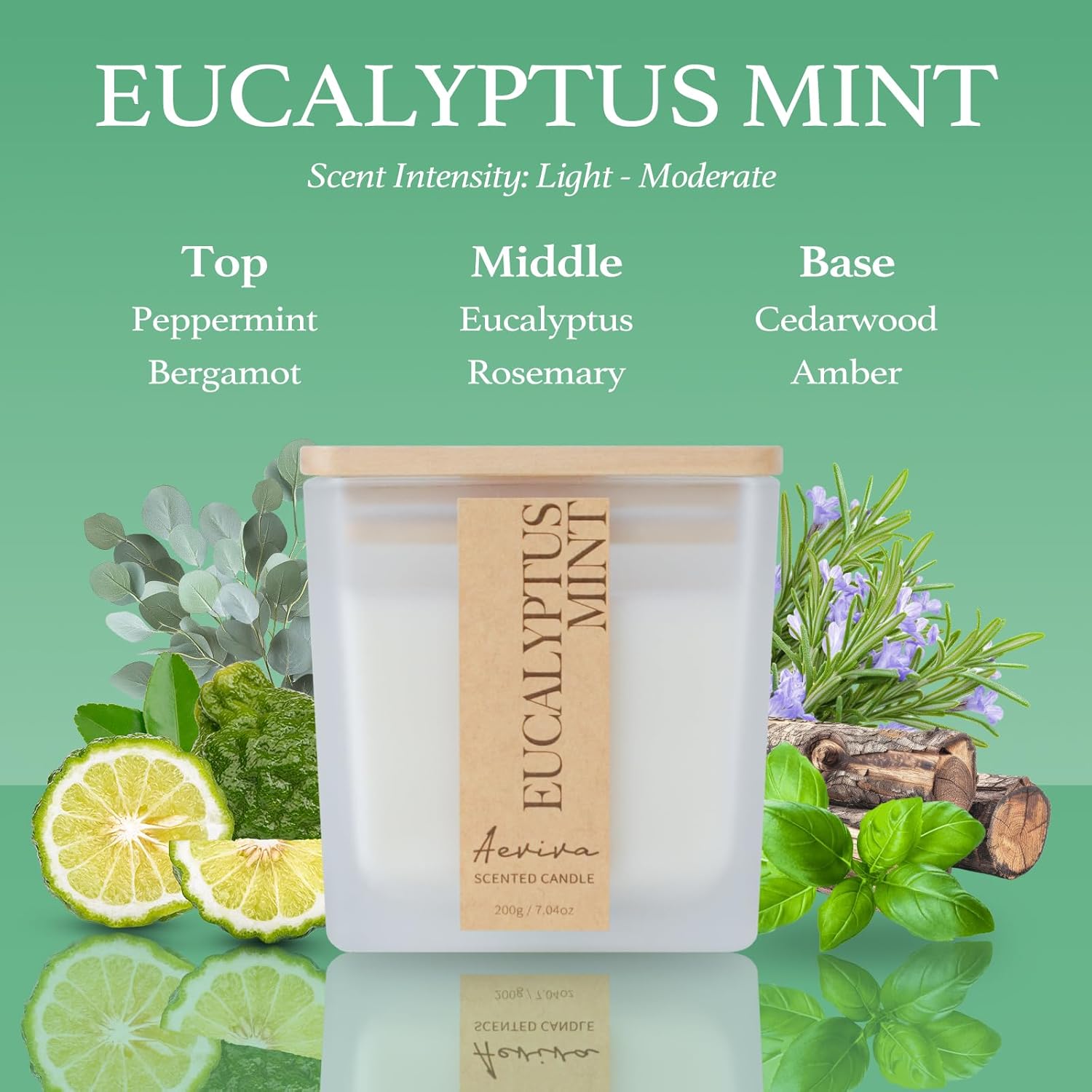 Eucalyptus Mint Scented Candle: Unwind a long day with comforting aroma of fresh eucalyptus leaves, balanced with crisp mint to refresh your mind and release stress