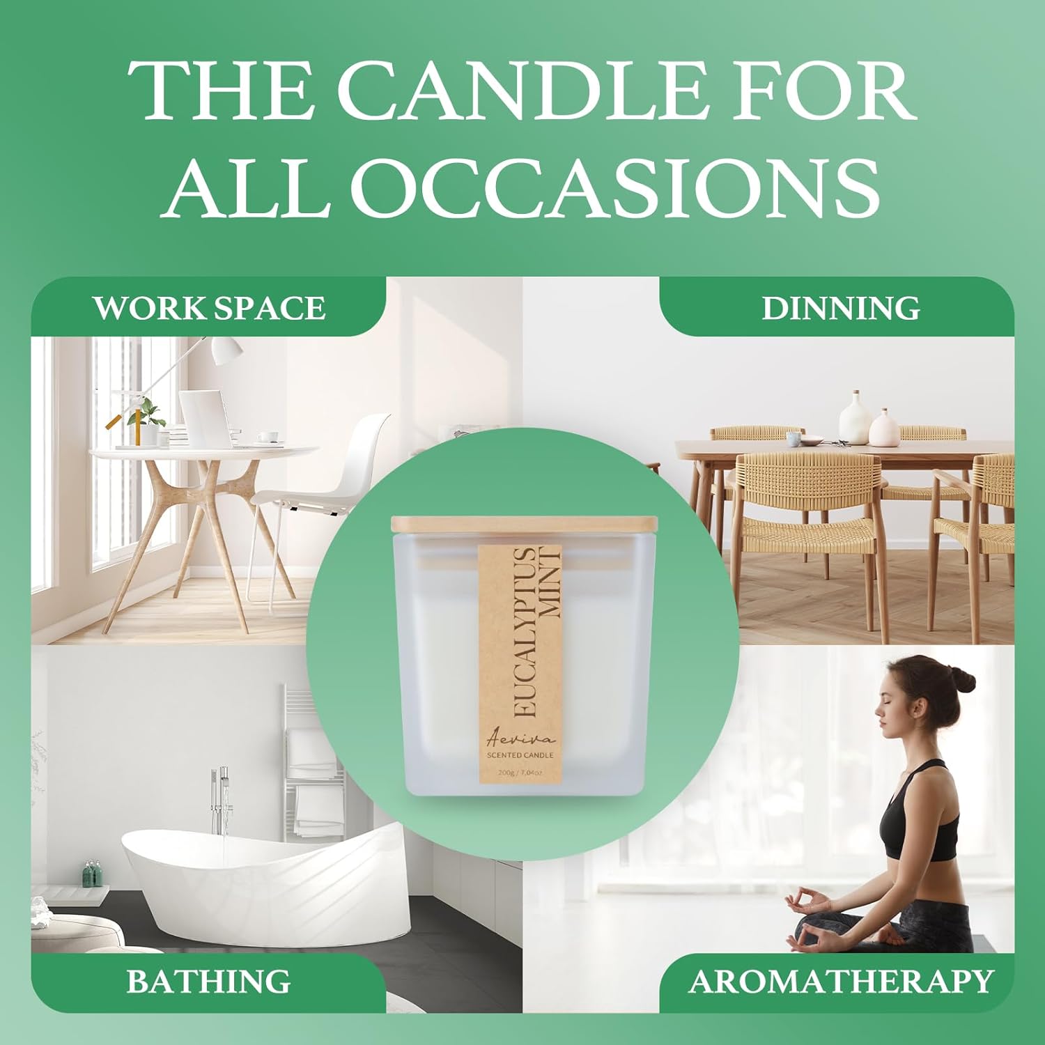 Eucalyptus Mint Scented Candle, 7.04oz 40 Hour Burn, Natural Soy Wax with Crackling Wood Wick, Highly Scented Aromatherapy Candle for Stress Relief & Meditation, Gifts for Women & Men