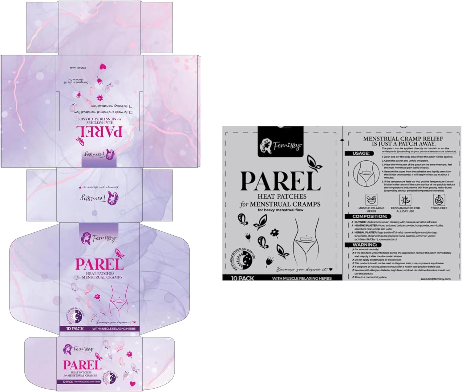 First, I absolutely love Femissy’s packaging! It is inviting and soothing with their blend of subtle and pops of bright colors. The positive messaging encourages me to feel better and take care of myself. These pads are designed for all skin types and did not irritate my skin. While I did not need to, the heat level can be adjusted with the temperature sticker. The level of heat that I felt was what I believe would be good for a mild, light flow. Now, I do have Endometriosis, so I would not be able to use these without medication during a heavier cycle. They do make some for heavier flow though, so I may give those a try. However, for someone looking for a natural, medicine free, herbal approach, then I recommend giving these a try.They are made well with all natural herbs with the pads. They heat up immediately upon application, which can give immediate relief. My only suggestion is perhaps a bit more flexibility in the pad for women that have belly overhang. The pad is a good size but does not fold with the crease. I have not cycled for a while due to medication, but I may still wear it for a long time to see how long relief is provided. Aside from that, these are great quality and worth the value.
