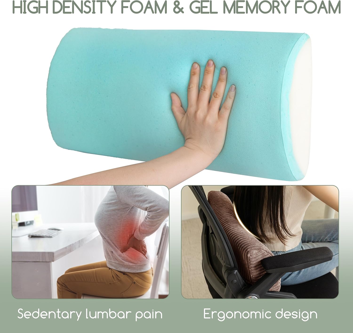【Dual Layer Foam Design】 Our recliner lumbar support pillows feature an innovative double-layer foam design, with a memory foam upper layer that precisely conforms to the curve of the lumbar region, and a lower layer of high-density foam that provides firm and stable support. What’s more special is that our lumbar pillow’s surface layer is infused with gel memory foam, which keeps the body feeling fresh even after a long time of use, bringing you unparalleled comfort and enjoyment.