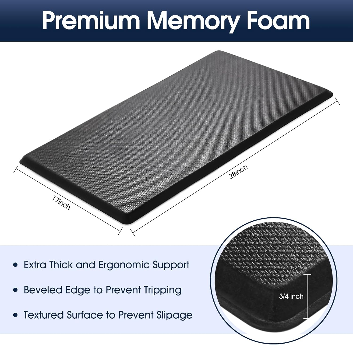 Anti Fatigue and Comfort:Lukrite anti fatigue mat is made of premium high-density PVC foam that provides 0.75 inch extra thick cushion.It is professionally engineered to help improve circulation and posture and give ergonomic benefits while standing over time.