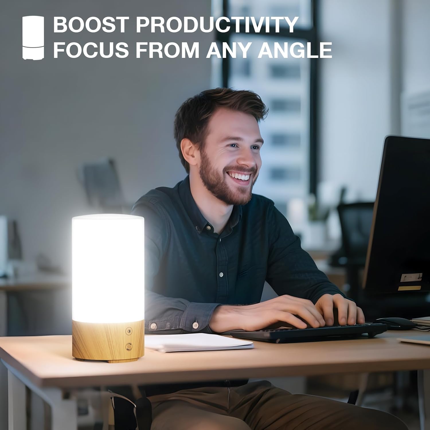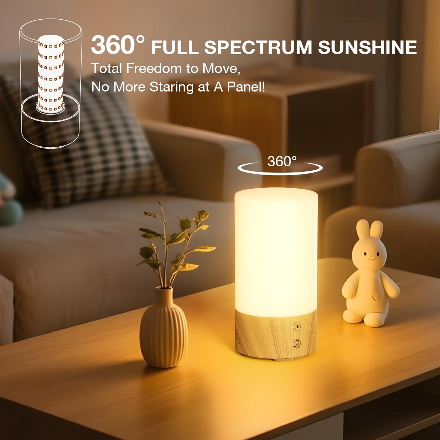 【Upgraded 360° Illumination & USB-C Charging Port】Our daylight lamp features an elegant cylindrical design that provides uniform, 360° illumination for a more immersive and balanced light experience. The built-in USB-C port allows you to power your phone, tablet, or other devices whether the light is on or off, saving space and clutter on your desk.