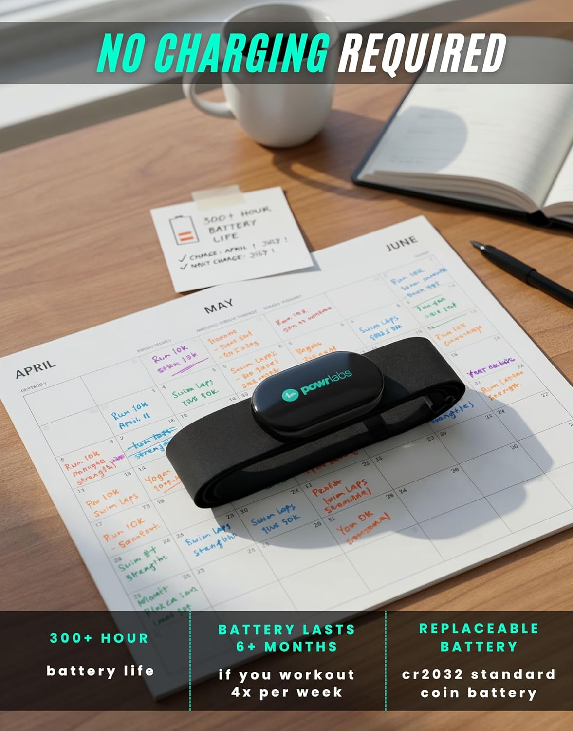 SURVIVES YOUR TOUGHEST TRAINING – IPX67 SWEATPROOF – Fully sweat proof and water resistant, the Powr Labs chest heart rate monitor handles torrential rain, brutal sweat sessions, and swimming under a wetsuit. Built to work as hard as you do.