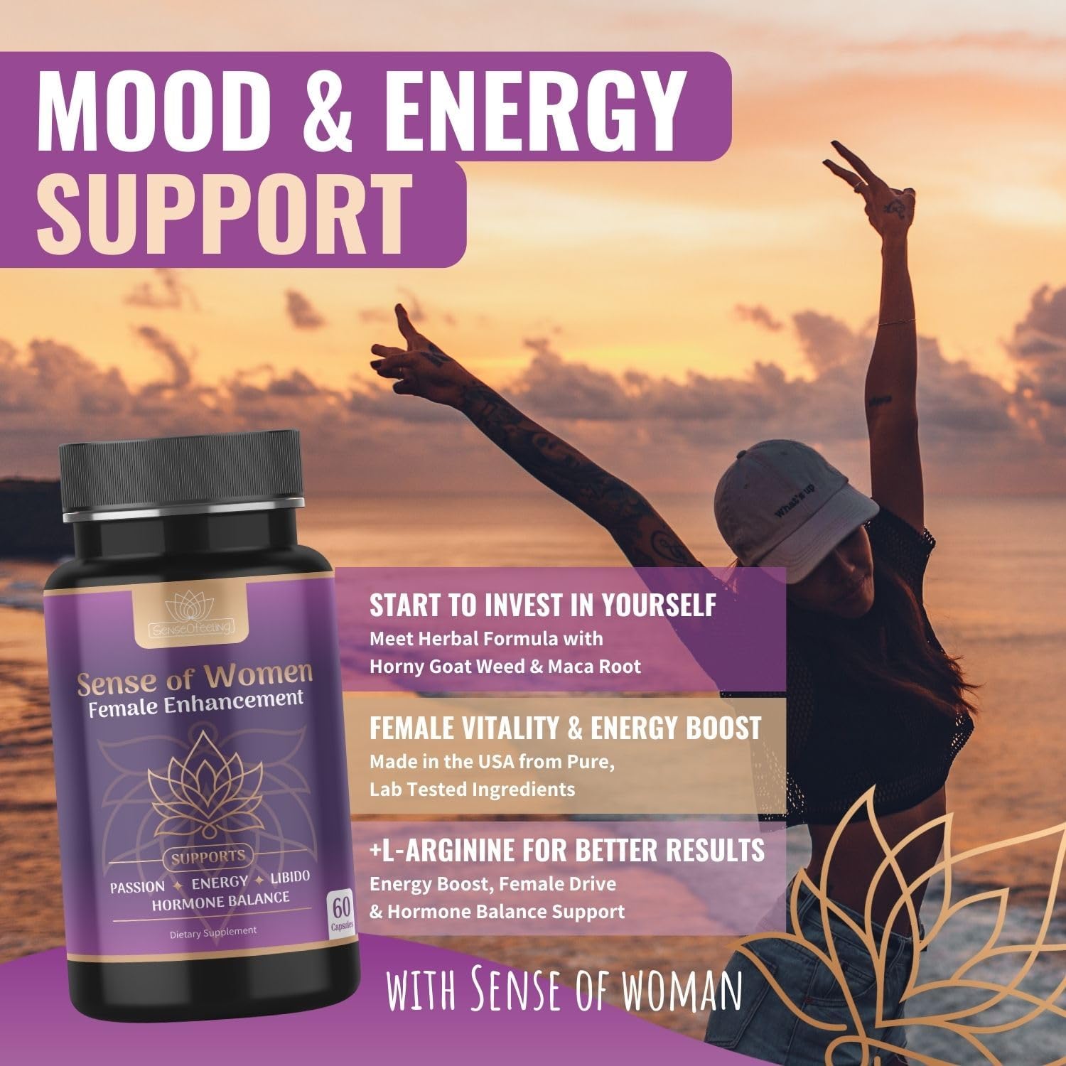 Rejuvenate your vitality with Sense of Women. Crafted for natural energy enhancement, this supplement aids in overcoming fatigue and low drive.
